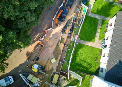 - Ziel: Sanierung (durch Erneuerung) eines Abschnitts eines Mischwasserkanals und gleichzeitig Schaffung von Platz für zwei neue Bäume