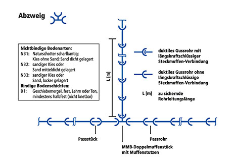 bei einem Abzweig mit 90° nach DVGW-Arbeitsblatt GW 368